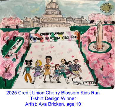 Are you a blossoming young artist or the parent or guardian of one? We are now accepting designs for the 2026 Credit Union Cherry Blossom Kids Run T-Shirt Art Design Competition. The Credit Union Cherry Blossom Kids Run will take place on Saturday, April 11 at 9:45 a.m. in Arlington, VA at Army-Navy Dr. and S. Fern St., in conjunction with the Credit Union Cherry Blossom 5K presented by ASICS. One of the unique things about our Kids Run is that all participants receive a T- Shirt with artwork on it done by one of the kids!