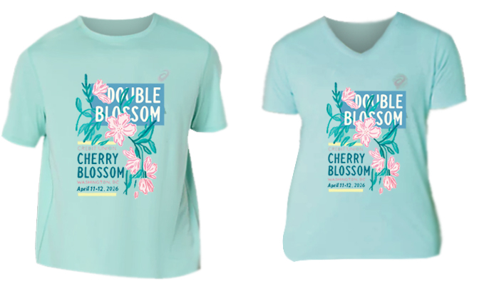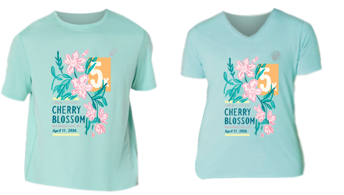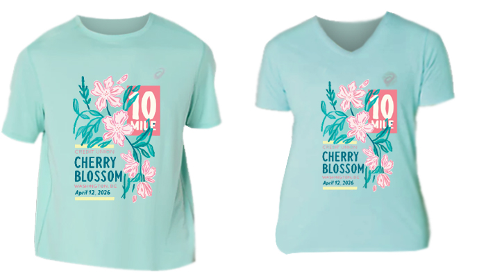 Participant short-sleeved T-shirts are given to all 10 Mile and 5K entrants. At registration, participants are given the option of taking the free cotton t-shirt or purchasing an ASICS technical short-sleeved t-shirt for $20 in place of the cotton shirt. (Note that Double Blossom runners are given the option to upgrade to a technical Double Blossom t-shirt, and may also purchase a 10 Mile and/or 5K technical t-shirt for $20 each). The upgrade shirts come in crew neck for men and V-neck for women.