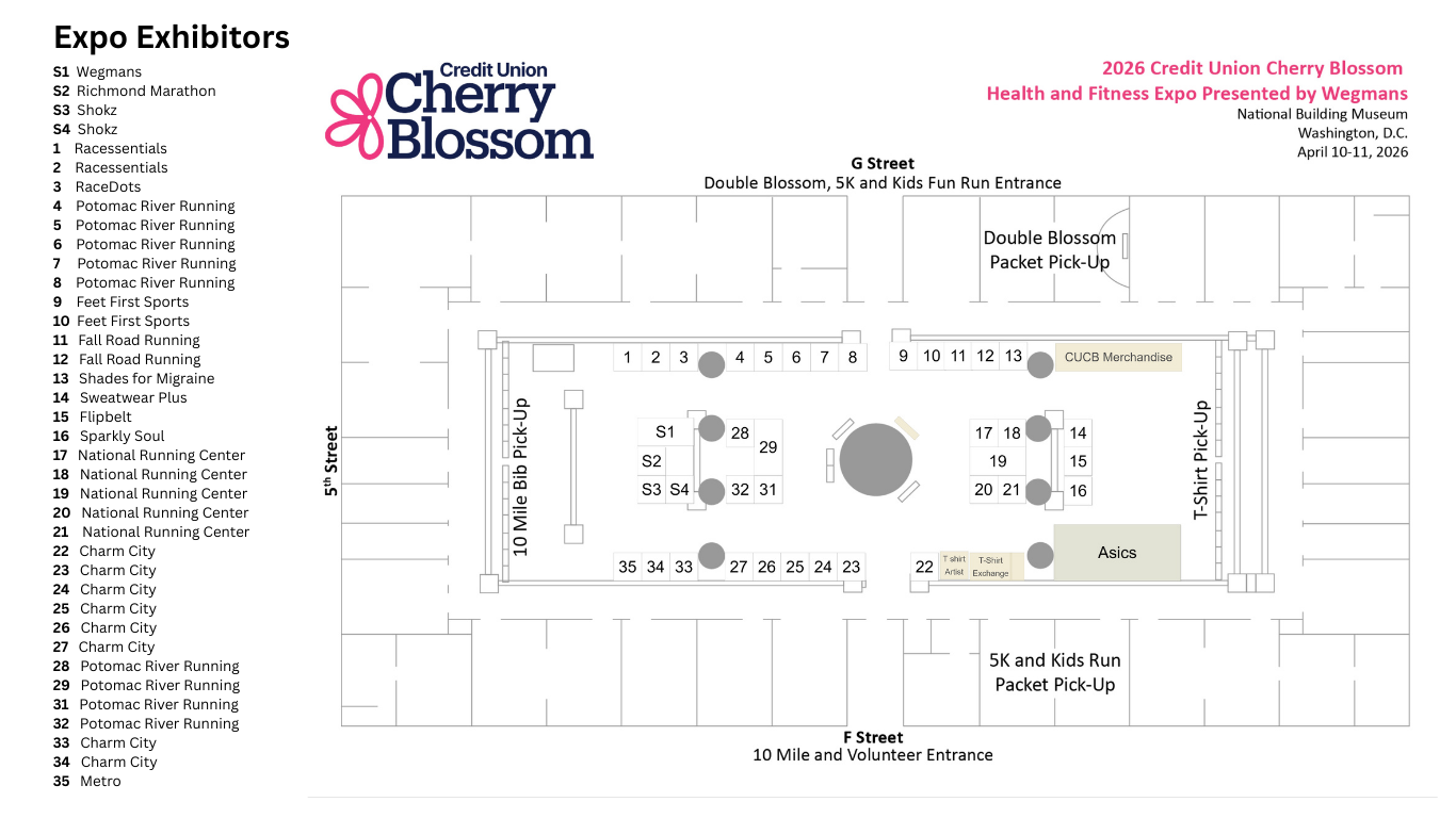 Pick up your race packet and t-shirt at the Credit Union Cherry Blossom Health and Fitness Expo Presented by Wegmans:
