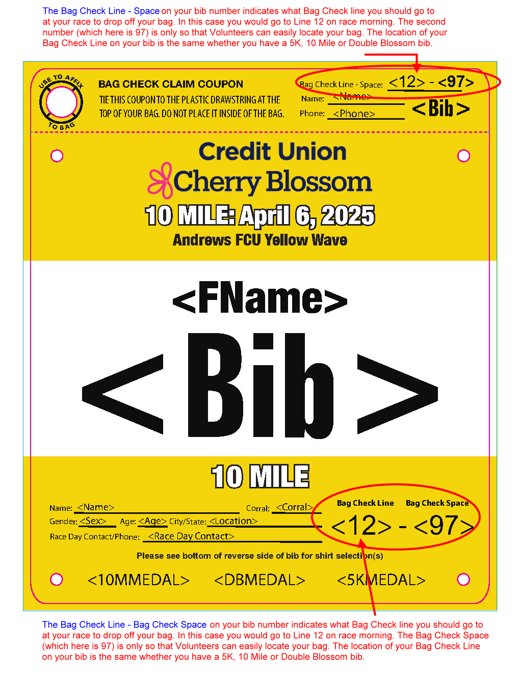 NOTE: All of the instructions about Bag Check apply both to the Bag Check at the 5K and the 10 Mile – we are using the same Bag Check procedures for both races.